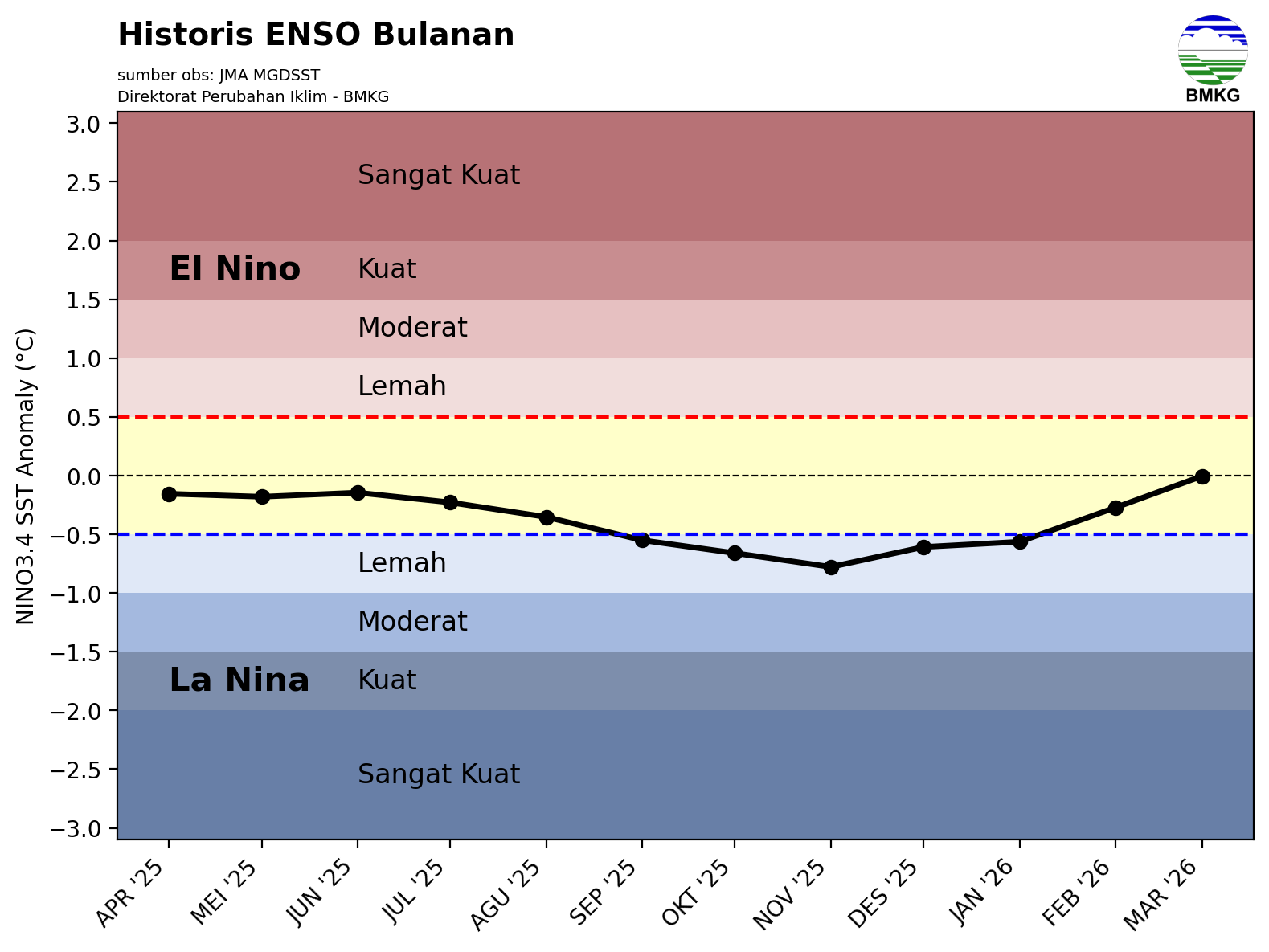 El Nino-Southern Oscillation (ENSO) didefinisikan sebagai anomali pada suhu permukaan laut di Samudera Pasifik di pantai barat Ekuador dan Peru yang lebih tinggi daripada rata-rata normalnya.